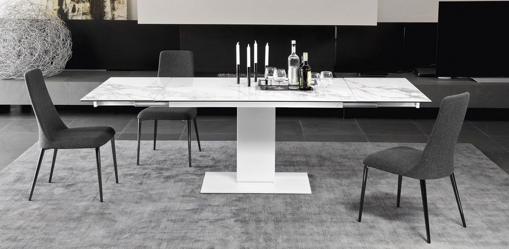 Parlando di tipologie di tavolo, iniziamo subito con il dire che esistono tavoli allungabili che possono occupare anche poco spazio quando sono chiusi per poi diventare davvero grandi se aperti, tavoli salvaspazio a consolle anch’essi allungabili (che quando chiusi assomigliano alle consolle svuota tasche da ingresso e che sono perfetti per ospitare dei soprammobili), tavoli non allungabili di varie forme, penisole fisse, tavoli a muro, tavoli scultura ma anche molto altro.